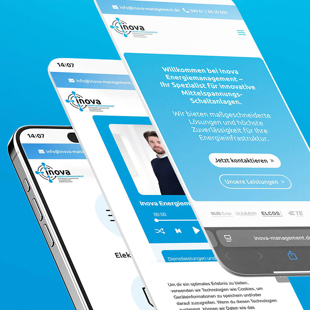 Doch eine Responsive Website ist mehr als nur eine Oberfläche. Deshalb legen wir besonderen Wert auf schnelle Ladezeiten, sauberen Code und Suchmaschinenfreundlichkeit. Und wir sorgen dafür, dass jede Seite auf allen Geräten gut funktioniert – vom großen Screen bis zum Smartphone. So entsteht ein digitales Produkt, das Ihre Marke glaubwürdig repräsentiert und Ihre Ziele unterstützt.